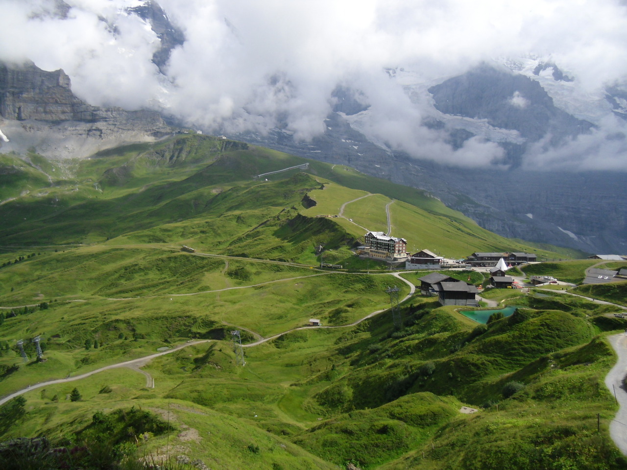 Now, we are sitting on the Kleine Scheidegg in Switzerland on 2061m above ground on the cosy sun terrace of the Grindelwaldblick restaurant looking at the summit of Eiger, Mönch and Jungfrau. Tomorrow our tour is going to start.