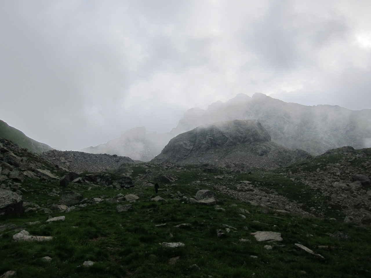 The pass also is the border between Italy and France and so we continued the next part of today in France (actually most people on the last hut were from France). More or less we continued walking on the same altitude until we reached Bivaccio Soardi on 2620m. It lays directly behind the Col de Bouchet. Now we are back in Italy
