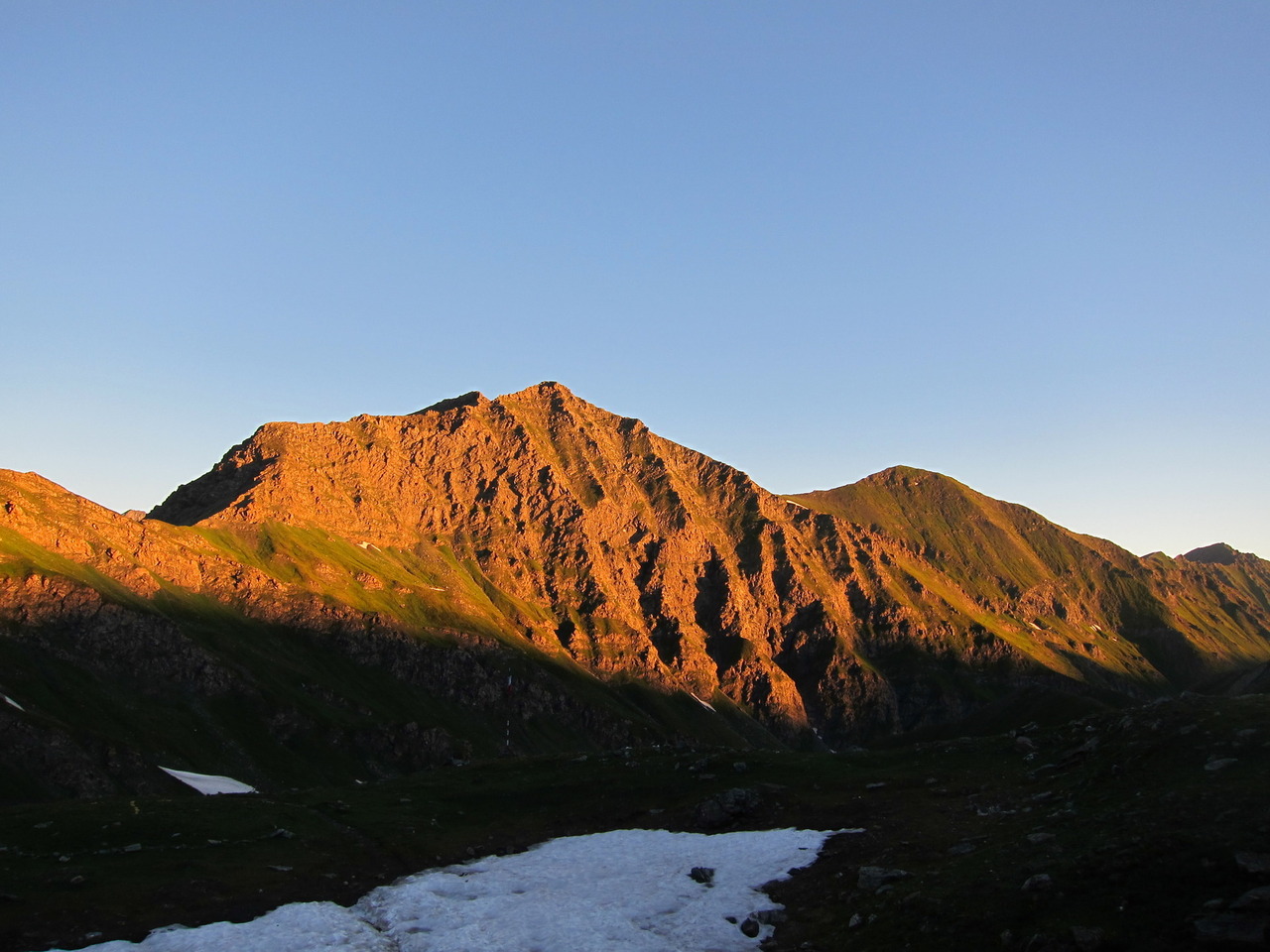 From Rif. Lago Verde we start early. A steep mountain path (personally I wouldn’t call this a path any more) led us upwards to a pass on about 2700m. Here we were the first this morning. An ibex stood right in front of us watching us curiously. We made some photos this time