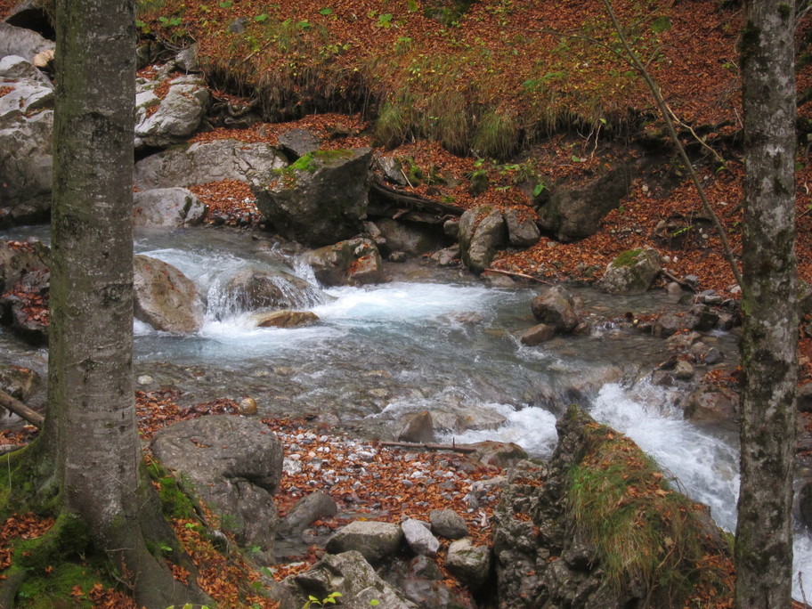 When we woke up today we saw many clouds out there and the weather forecast said that it will rain later in the day. So we decided to do only a short hike. We started in Oberstdorf and went in the direction of Gerstruben. Gerstruben is the highest village of Germany at 1155m. We chose the way via the Hölltobel and where amazed by the amounts of water coming down there!