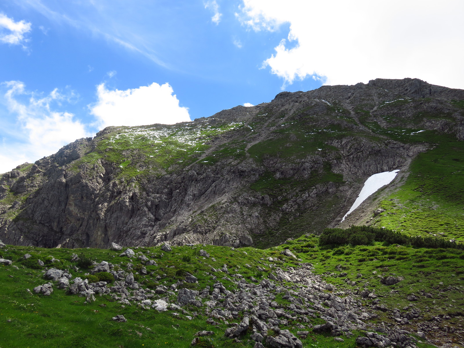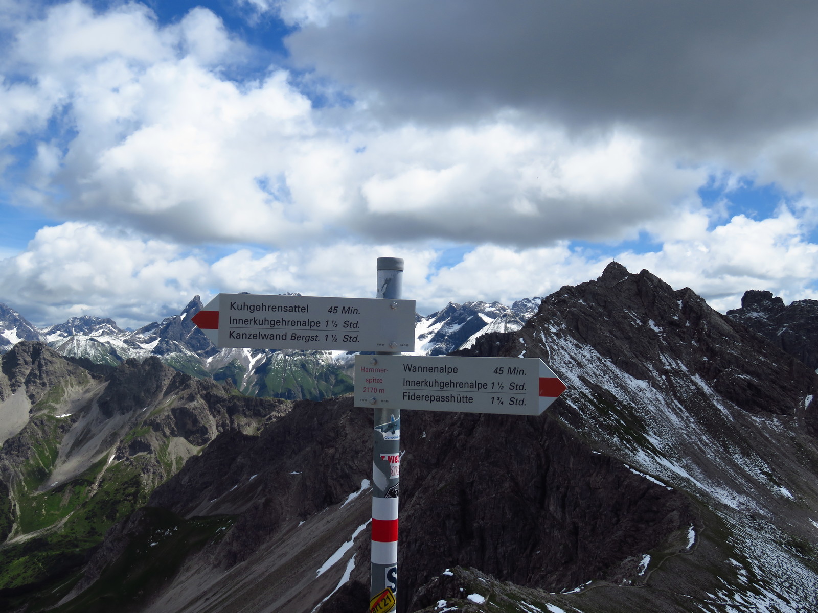 We started in Mittelberg and hiked to Kuhgehrenalpe. This place looked really nice, but it was a bit crowded by people coming up with the Kanzelwand cable car. We continued to the Hammerspitze. After leaving the path that comes from the cable car we were almost alone. The way up offers great views to the Ifen. From the summit we saw the path going to the Großgehrenspitze. It looked quite interesting and would surely be worth a walk.