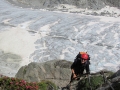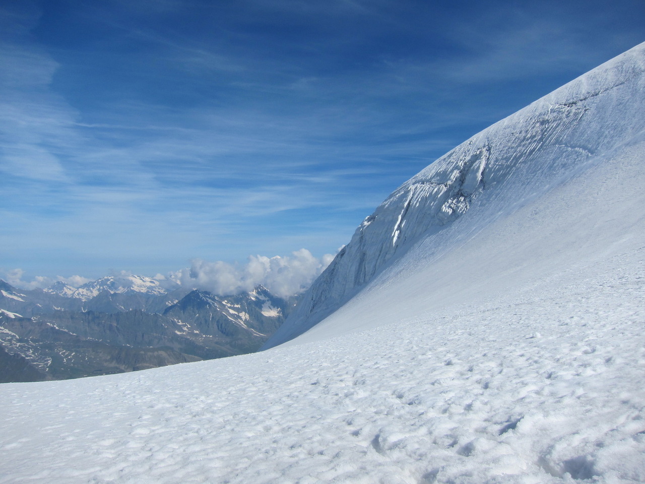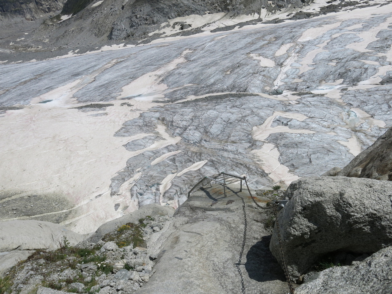 Another weekend full of sunshine! So we decide to take the train to Kandersteg. We stay at the Kanderhuette which is great, because it is very cheap and still a cosy place and it also includes a kitchen. The next morning we walk up to the Oeschinensee. This lake is super beautiful! 🙂 We are very early and only a few other people are there. We take a long break here before we continue hiking up to the Bluemlisalphuette. From the trail we have a good view of the glacier (or at least what is left of it) and for a few hundred meters the trail also goes along the moraine. After a steep ascent we reach the Hohtuerli. From here it is only another 10 minutes to the hut.