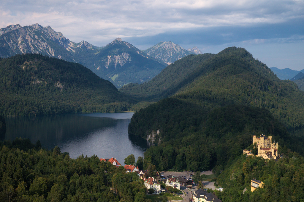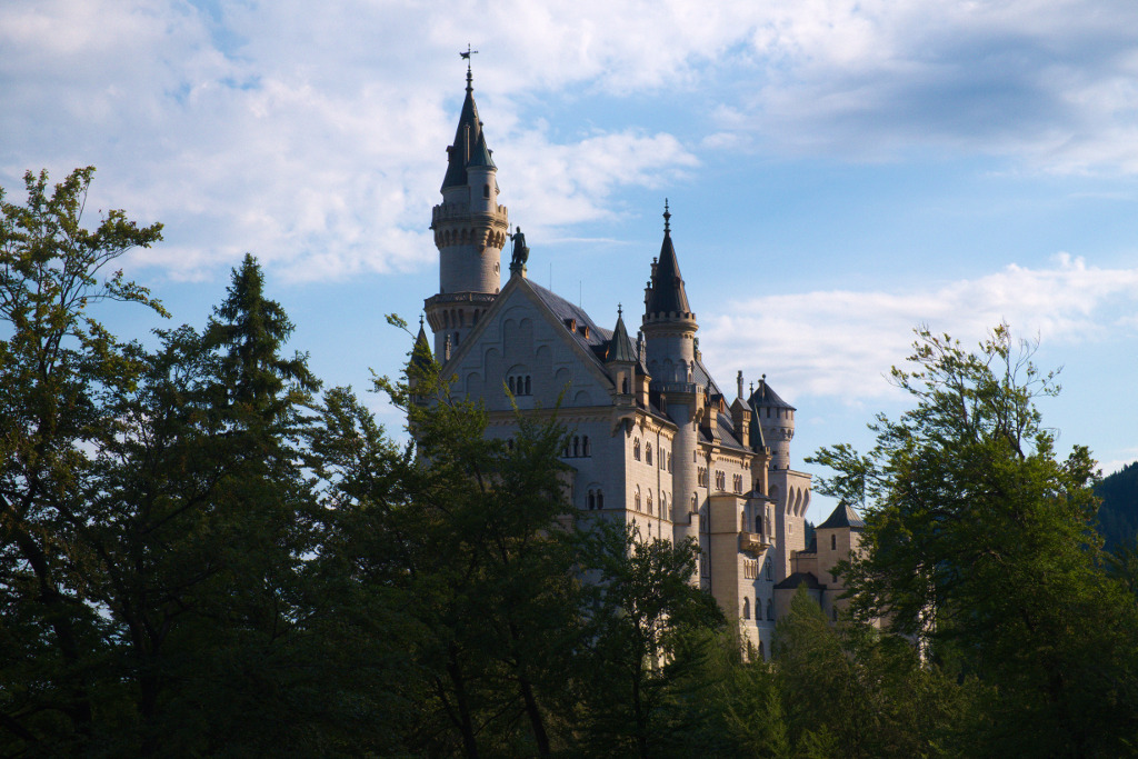 Today the weather forecast said sunshine until about noon and then thunderstorms.. So we think going the Tegelbergsteig and Fingersteig via ferratas is a good option, because you can do them in only half a day. We arrive at the car park of the Tegelbergbahn at about 8am. And right in front of us are already very big clouds. It looks like a thunderstorm would build up soon. So we decide not to do the via ferratas. Instead we walk to the Neuschwanstein Castle which is directly next to the Tegelberg.