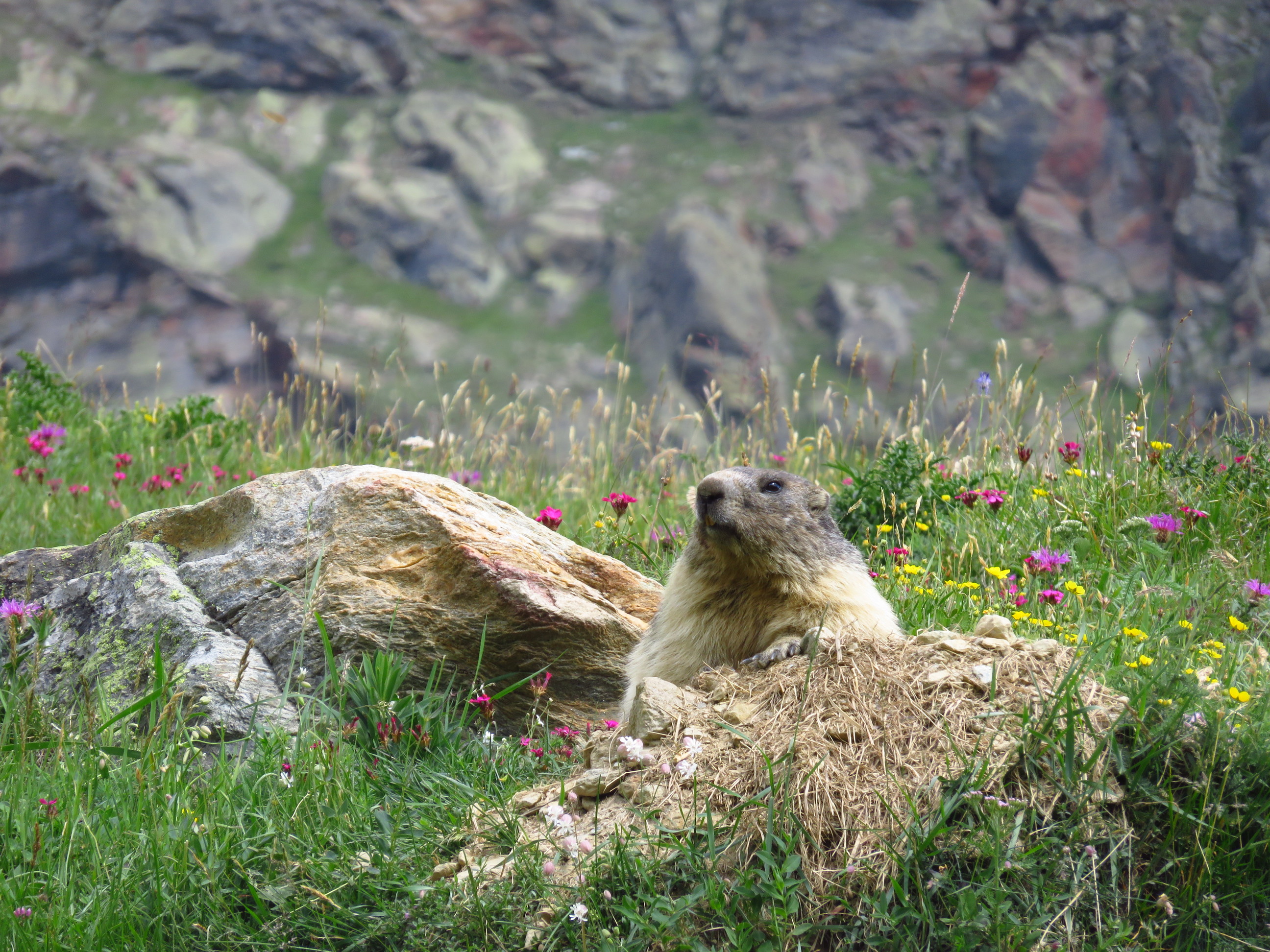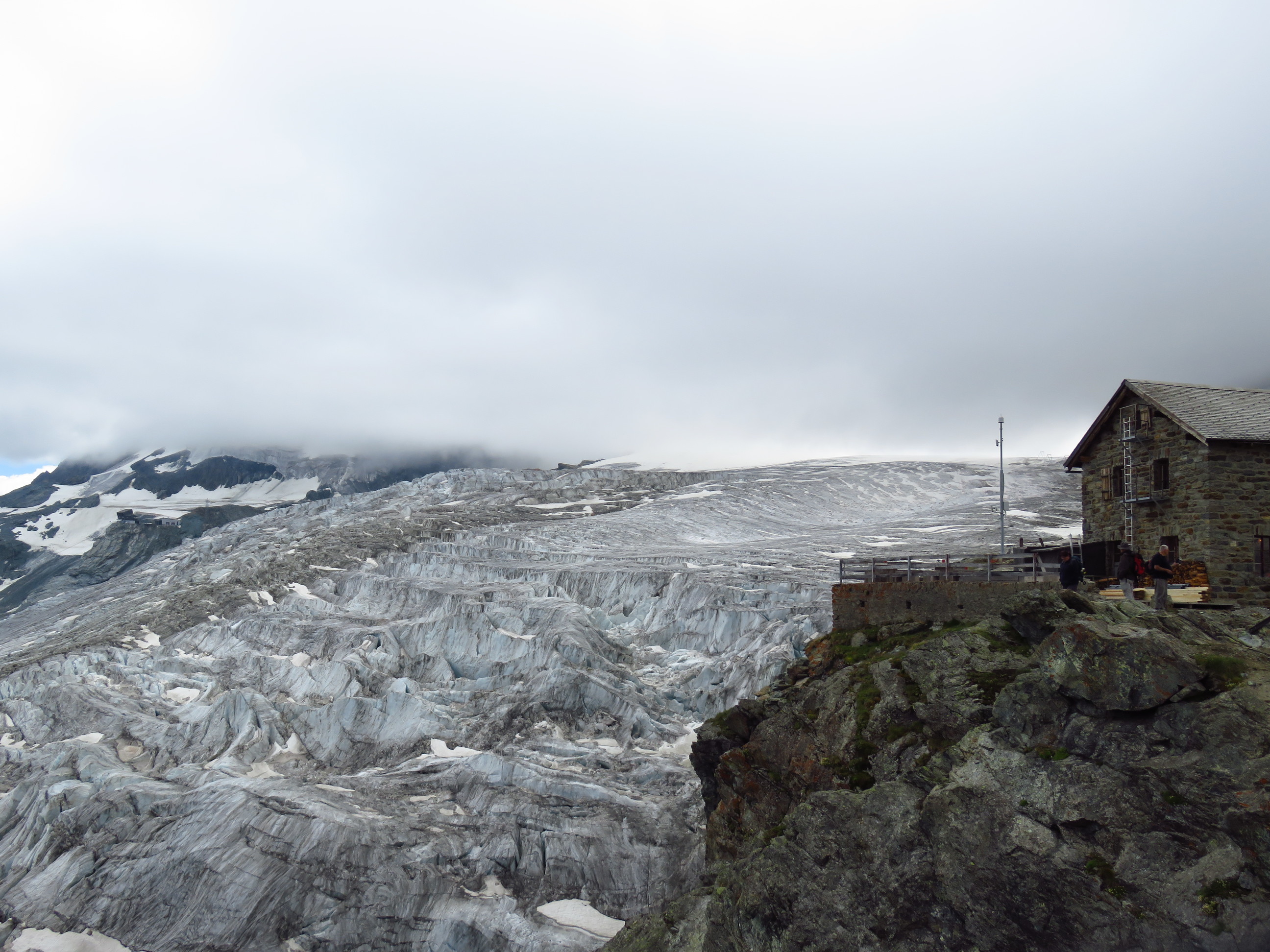 The next morning I decided to walk up the Langflue. Unfortunately the weather was not as good as the forecast said. But still the view of the glacier was great! On the way I saw two cute marmots. In the mountain hut I enjoyed a hot coffee before walking back down to the village.