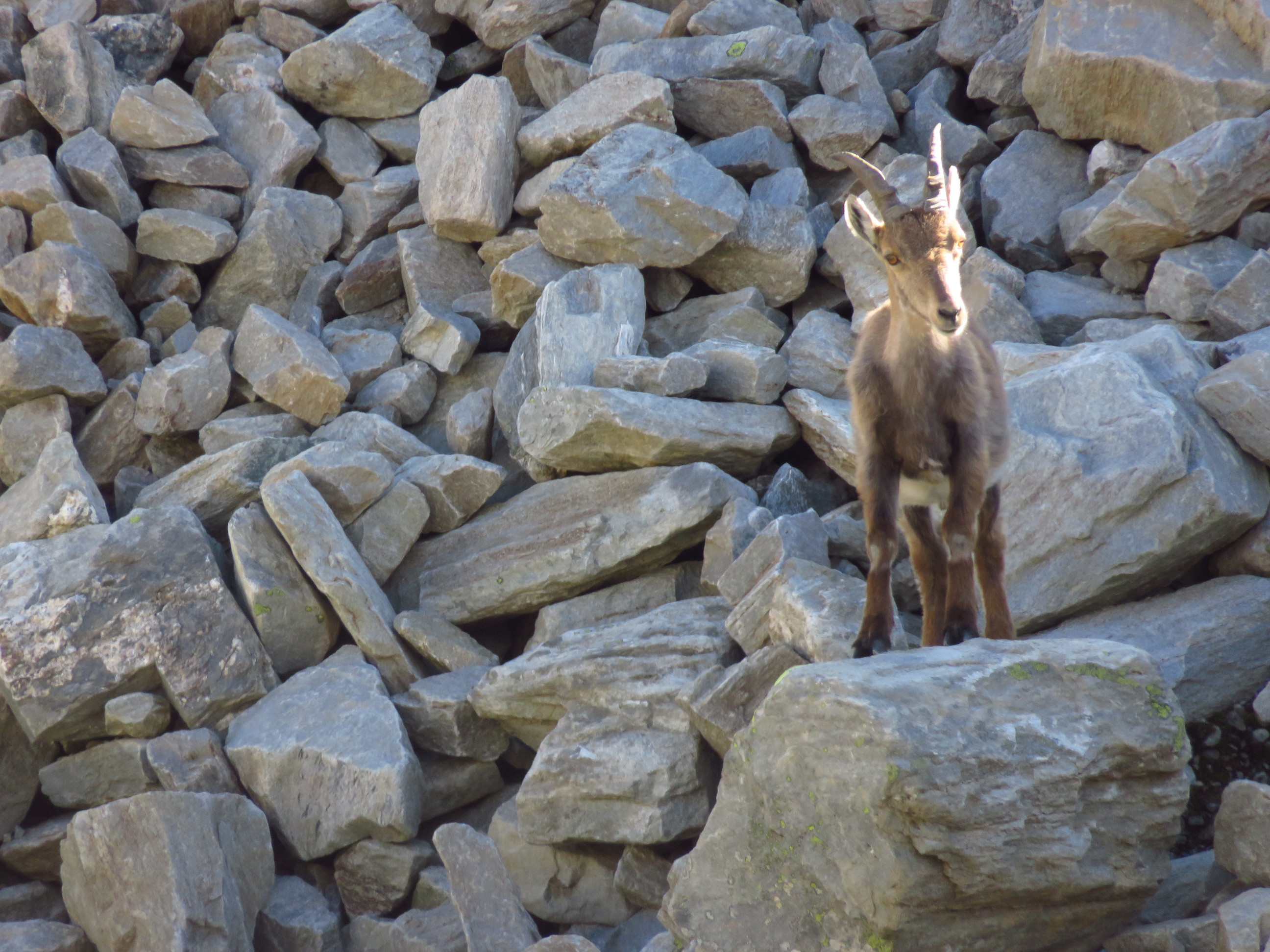 On the first evening I walked up to the Plattjen after the calbecar stopped running. I was the only person walking around and the view to the high mountains on the other side of the valley was fantastic. I could even see the Weissmies where I was three years ago. During a break I spotted some young ibexes which came really close 🙂