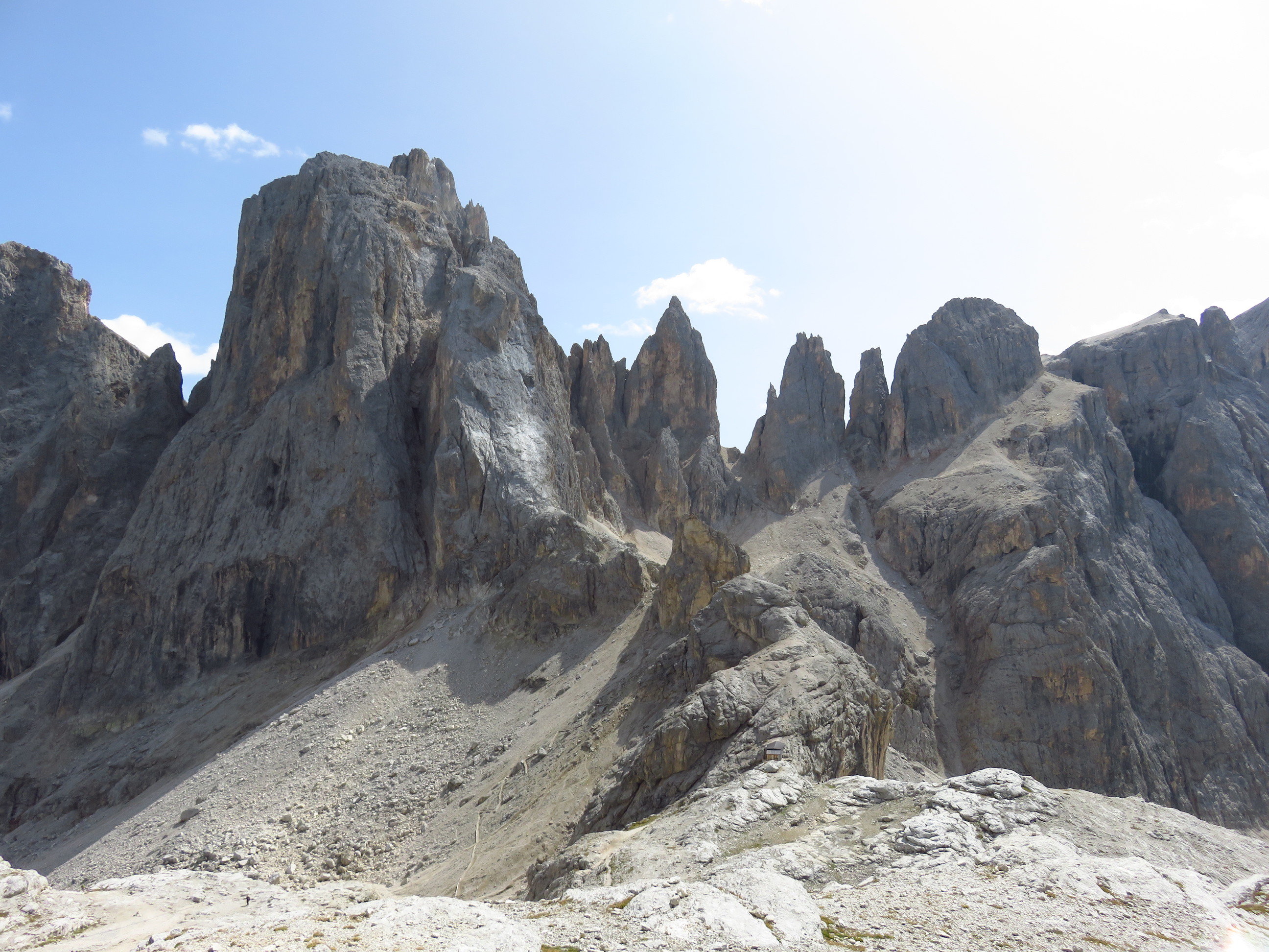 Summer time is Dolomites time! This year we decided to walk from North to South through the Pala group. The Pala is a not so famous group, but it is very beautiful and not so full with people. We started at the Passo Rolle. From there we hiked to the Rifugio Mulaz. In the afternoon we hiked up the M. Mulaz at almost 3000m altitude. The next morning we continued to the Rifugio Rosetta. The path was really cool with some climbing and perfect views around. From Rifugio Rosetta we did the Via Ferrata Bolver Lugli (C/D). It is 500 metres in altitude and the view down to San Martino di Castrozza is amazing! It finishes next to a bivouac. We walked back to the rifugio and stayed for another night. The next morning we continued to Rifugio Pradidali. There we took the Via Ferrata Porton (C) and Via Ferrata Velo (B/C) to the Rifugio Velo. Rifugio Velo is a very peaceful place. There were only very few other people and we had sunshine for the whole afternoon. We spend the whole afternoon on the sunlounger 😀 The next morning we walked back down to San Martino di Castrozza. This was another perfect vacation in Italy! 🙂