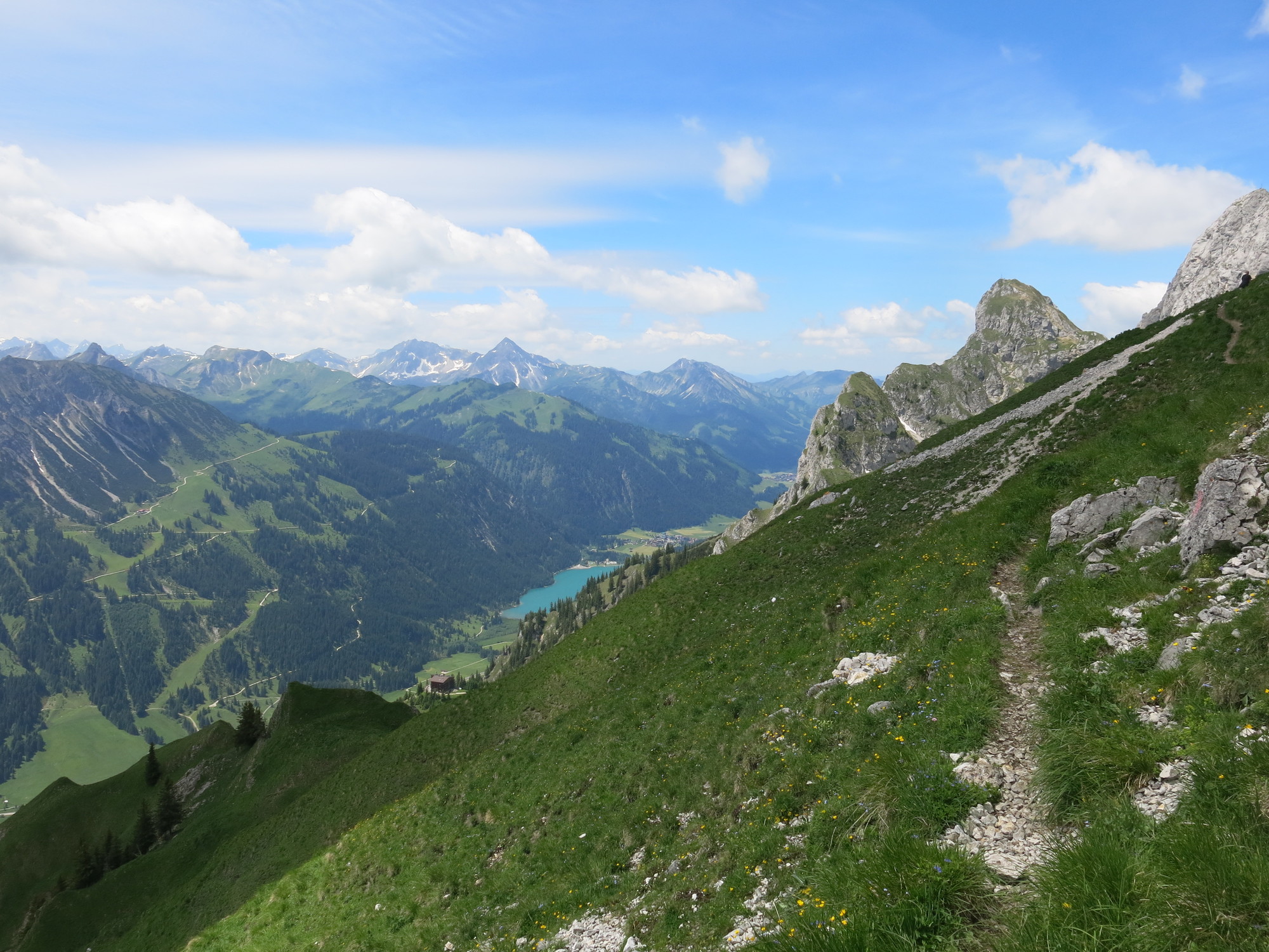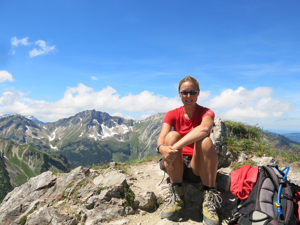 On Sunday our muscles were aching a lot and therefore we decided to take it easy. We drove to the Vilsalpsee and walked up to the Landsberger Hütte. From there we walked to the Sulzspitze. This is a really nice summit, no people, and a beautiful view around. On the small hut below we enjoy a cold drink before walking down to the car. The Tannheimer Tal is always worth a journey 🙂