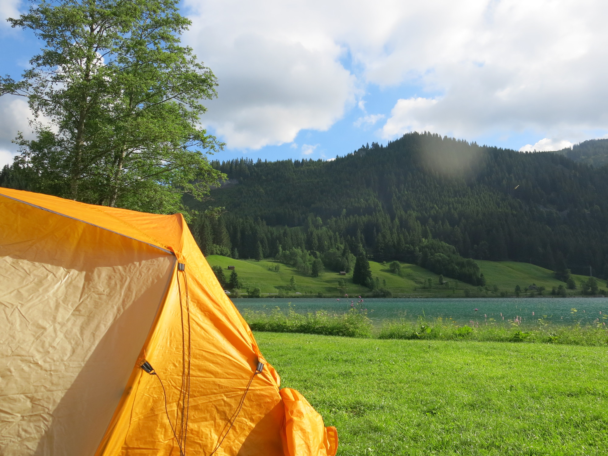 This weekend was said to be quite good weather, so we decided to spend it in the Tannheimer Tal. We slept at the camping site directly in front of the Haldensee. This is a really nice camping site and we were allowed to set up our tent directly in front of the lake. The atmosphere was very relaxed.