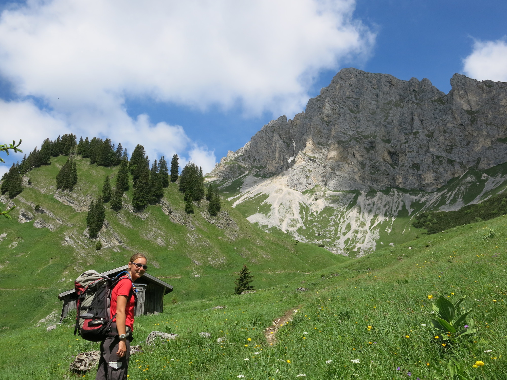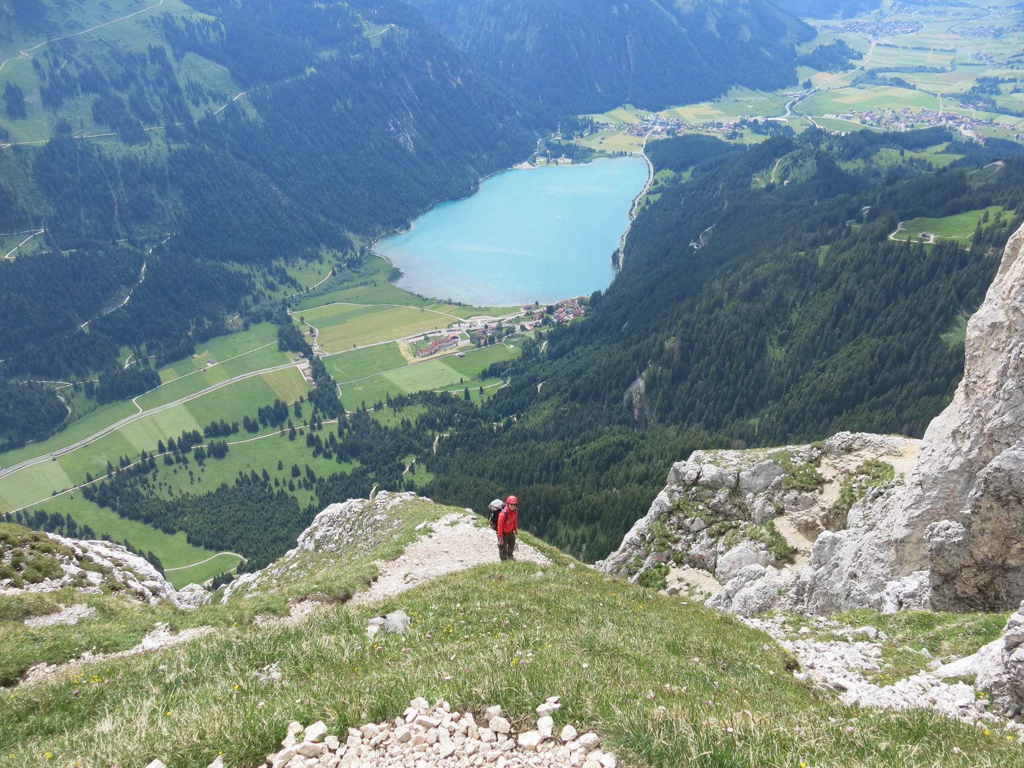 On Saturday we walked pass the Tannheimer Hütte and up to the Rote Flüh. It was already 8 years ago when we did this hike for the last time! From the Rote Flüh we walked down. This path where some parts are not secured by ropes was quite demanding. The via ferrata up to the Schartschrofen was very relaxed and after a short break we walked back down. Unfortunately the sun didn't come out today, but still we enjoyed the day back in the mountains.