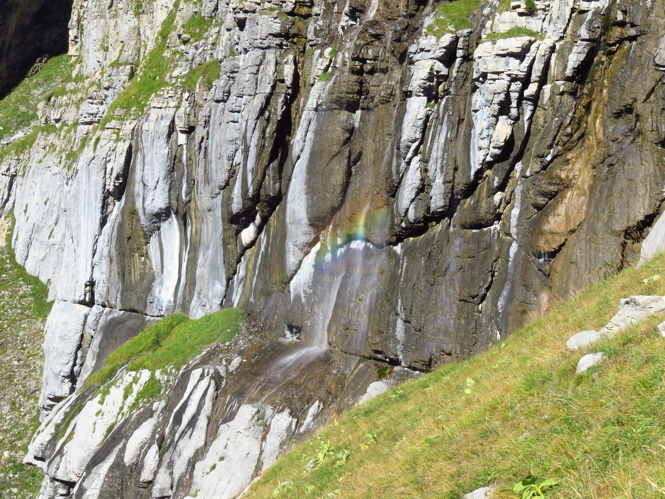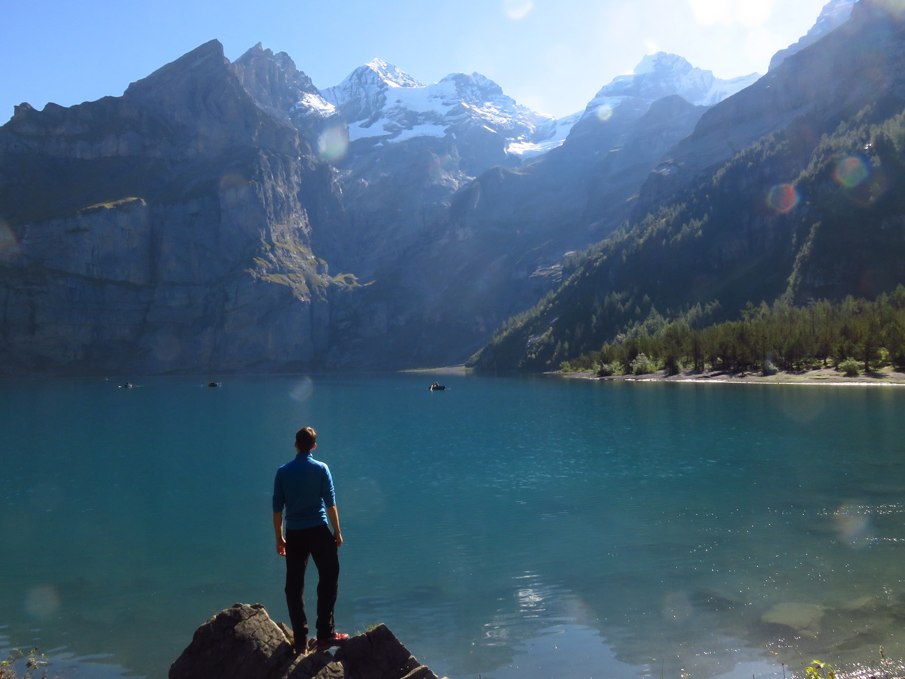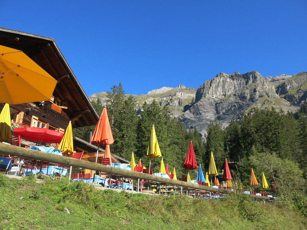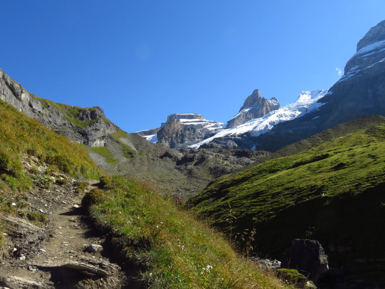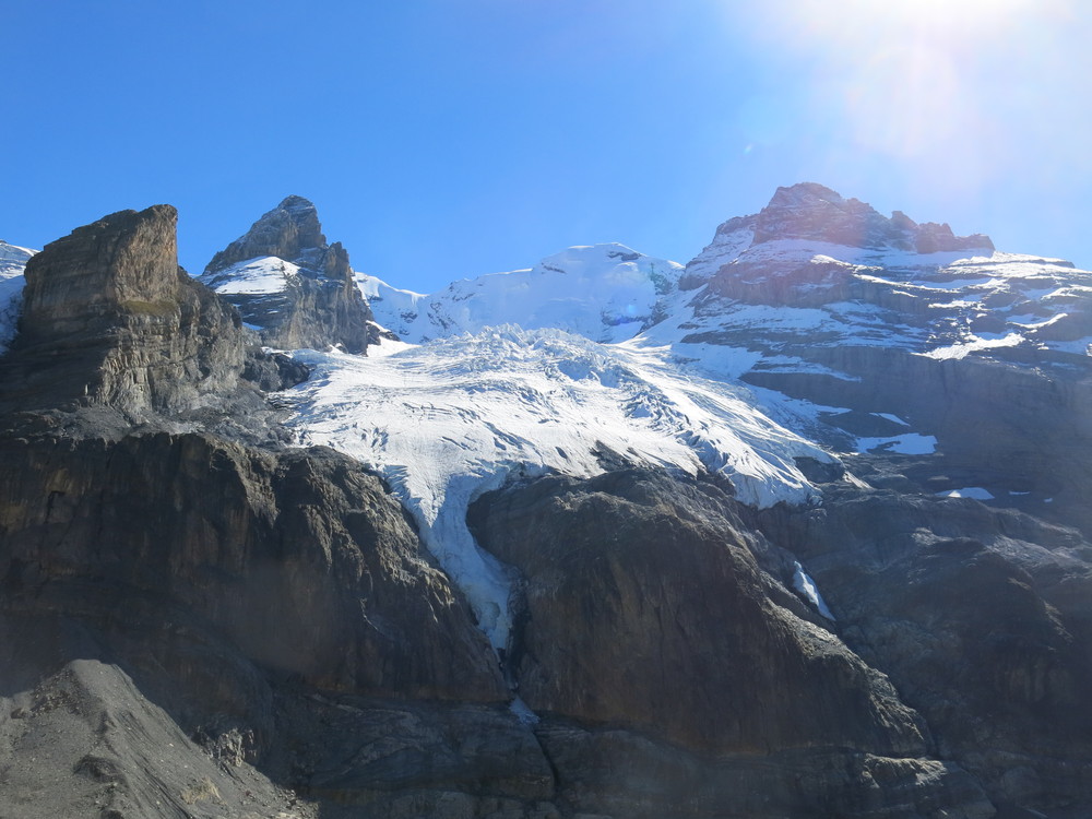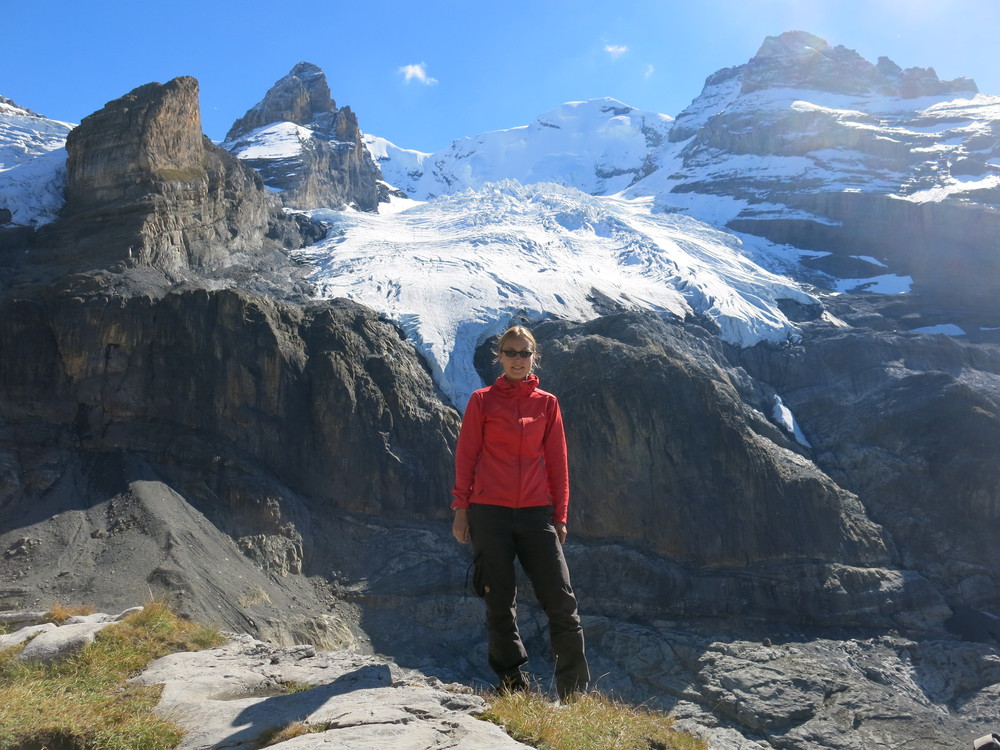 Another weekend full of sunshine! So we decide to take the train to Kandersteg. We stay at the Kanderhuette which is great, because it is very cheap and still a cosy place and it also includes a kitchen. The next morning we walk up to the Oeschinensee. This lake is super beautiful! 🙂 We are very early and only a few other people are there. We take a long break here before we continue hiking up to the Bluemlisalphuette. From the trail we have a good view of the glacier (or at least what is left of it) and for a few hundred meters the trail also goes along the moraine. After a steep ascent we reach the Hohtuerli. From here it is only another 10 minutes to the hut.