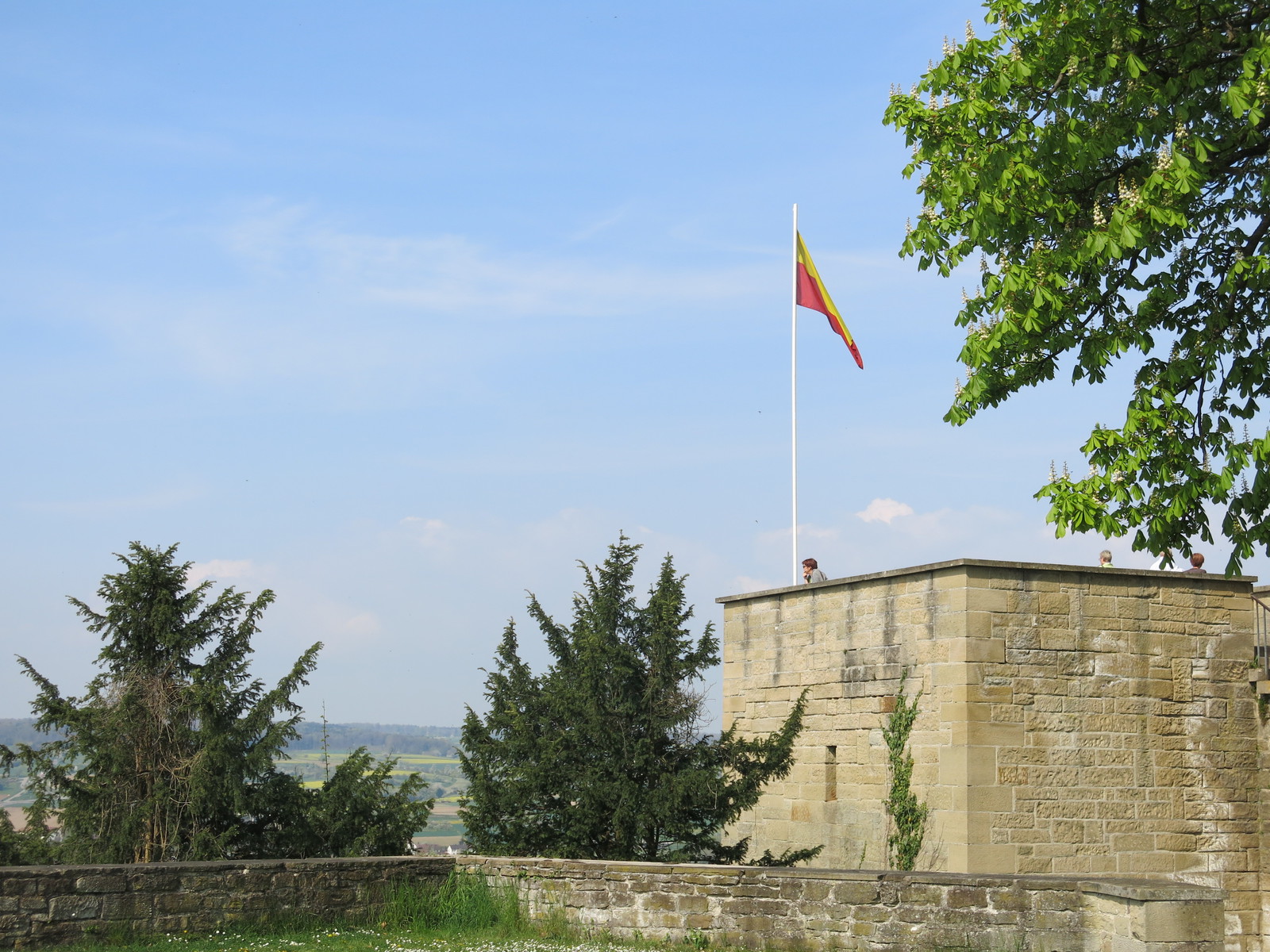 Not far from Herrenberg we arrived at the Herrenberg Waldseilgarten which is a kind of high rope course. Up to here it was a very nice path. The next kilometers were more or less in the forest. The last two kilometers before we arrived at Hohenentringen Castle were quite nice again. From here we had a very nice view down to the valley. The Hohenentringen Castle was a very nice place where we had something to drink and a piece of apple pie. After about 20km walking we really enjoyed sitting in the sun. After a long break we walked down to Unterjesingen from where we took the Ammertalbahn back to Herrenberg.